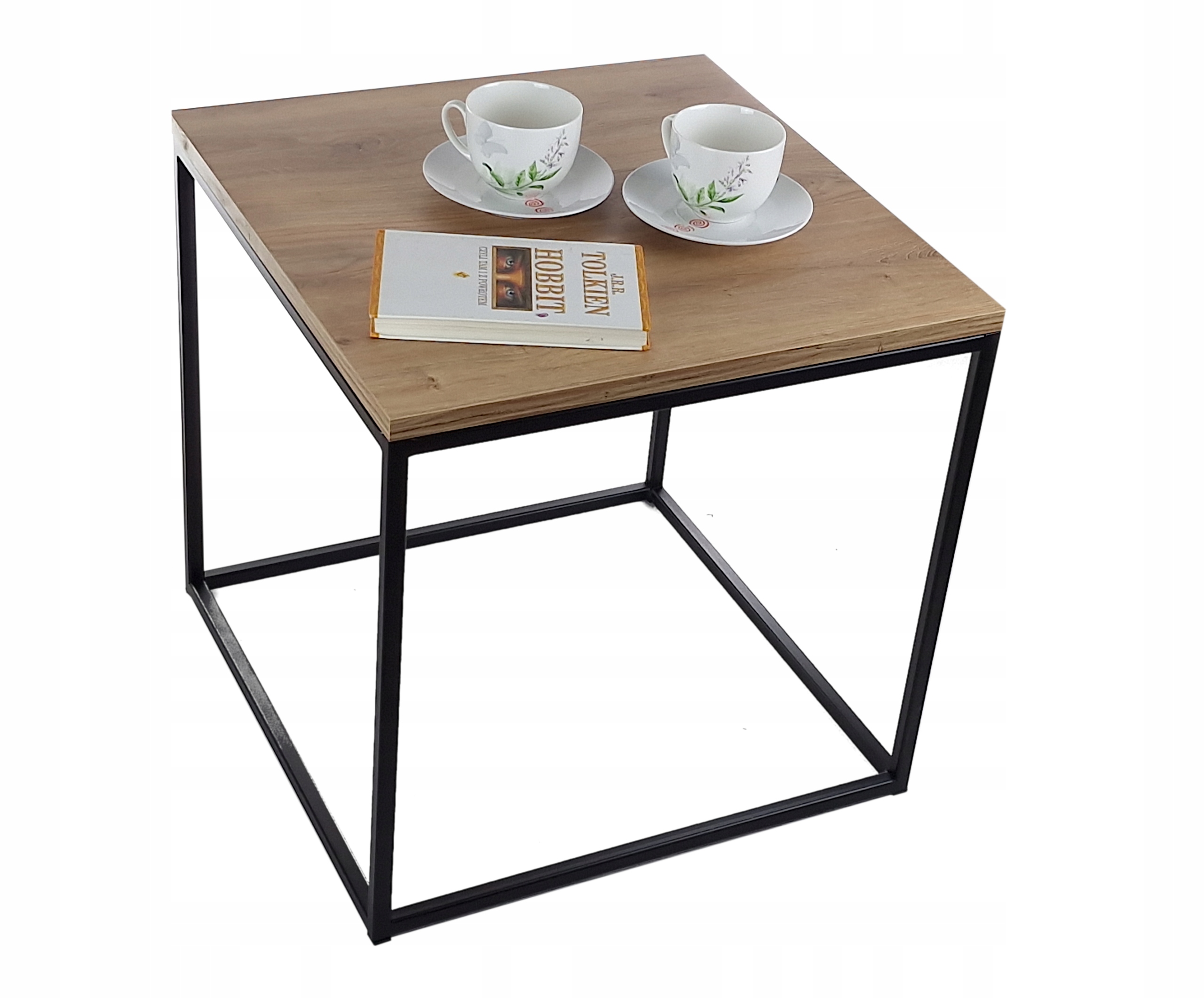 Stolik Kawowy Kwadratowy Metalowy LOFT dąb odwieczny
